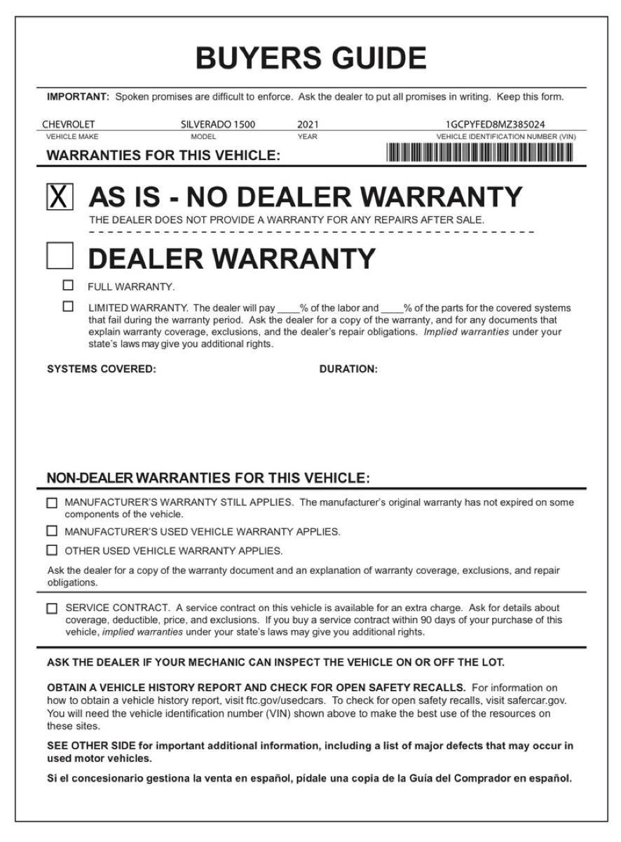 - Hwy: 21 MPG